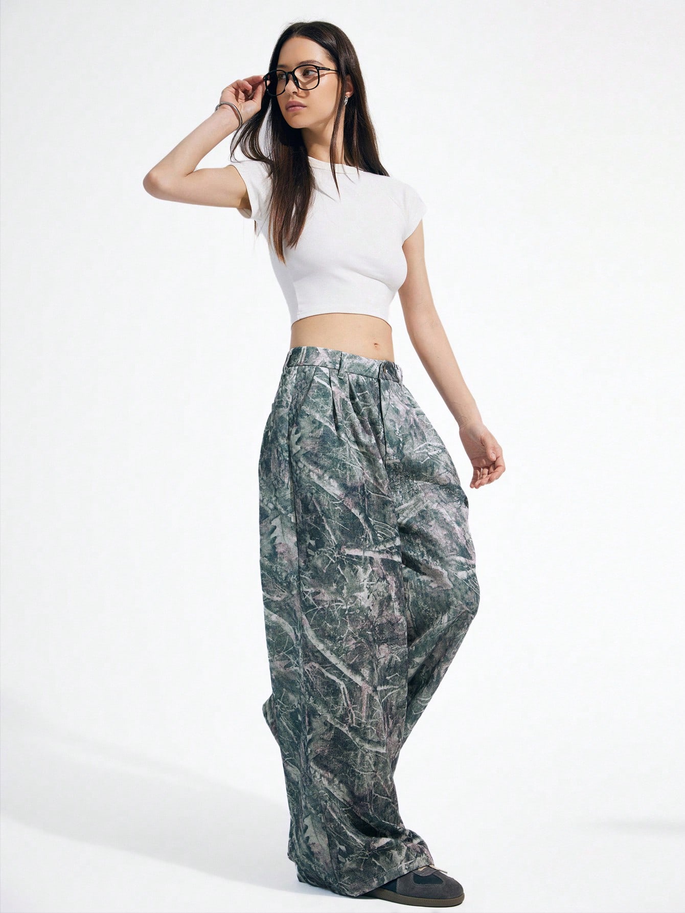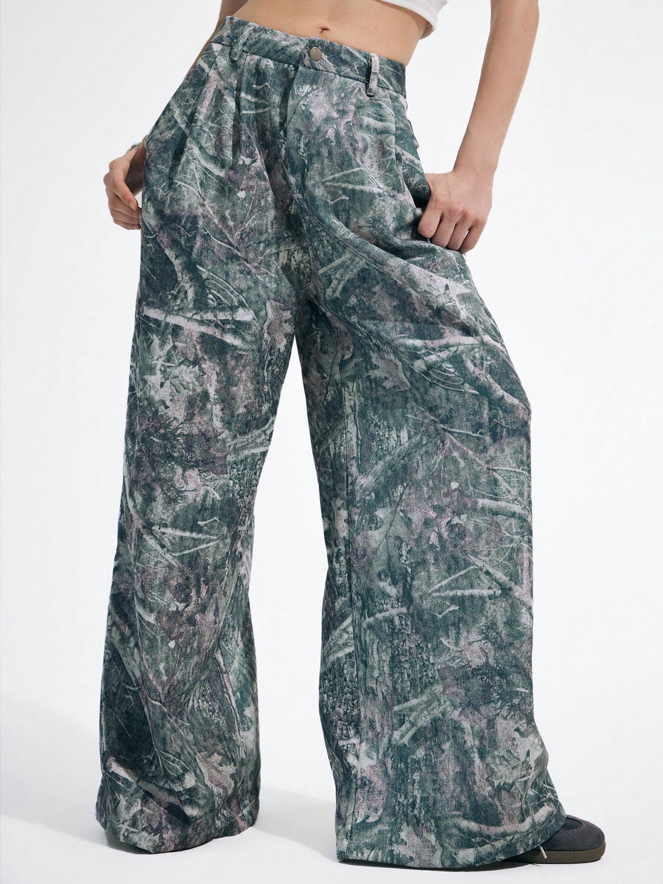Abstract Geometric Line Bare Tree & Leaf Industral Graffiti Streetwear Y2K Pleated Pants For Women
