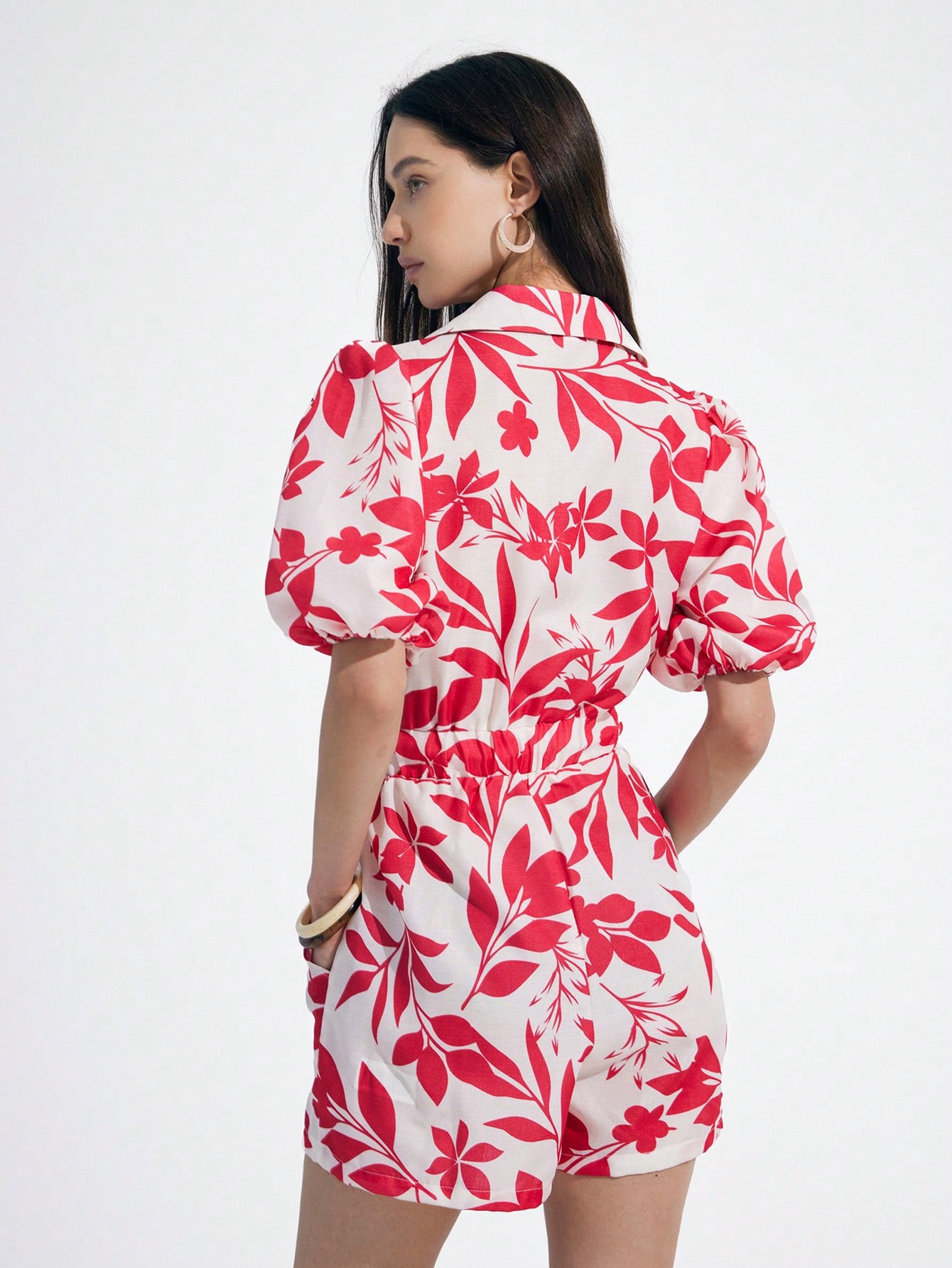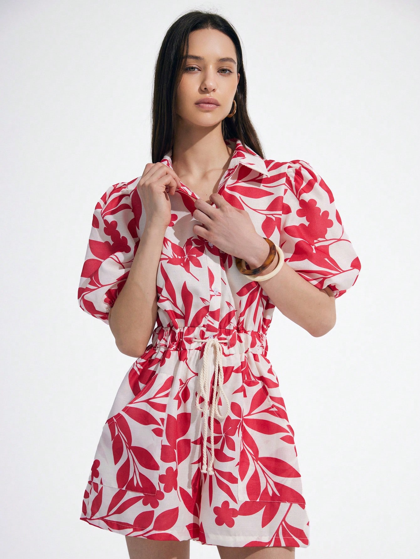 Shirt Style Short Sleeve Tie-Waist Cropped Women’s Jumpsuit
