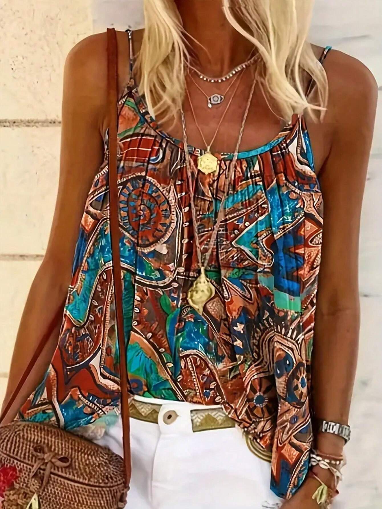 Ladies’ Vacation-Style All-Over All Over Print Camisole Cami Top Graphic Tees Women Tops