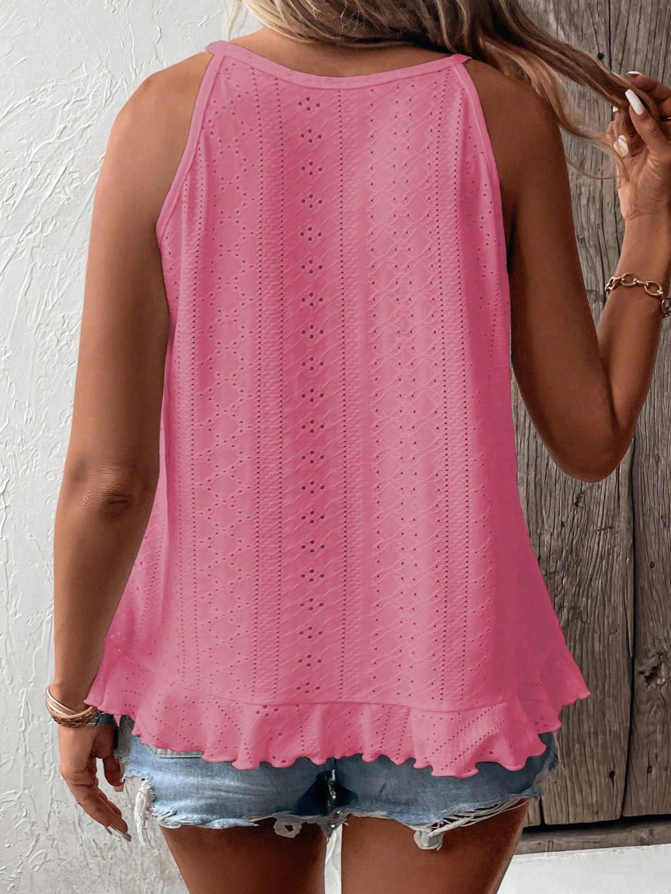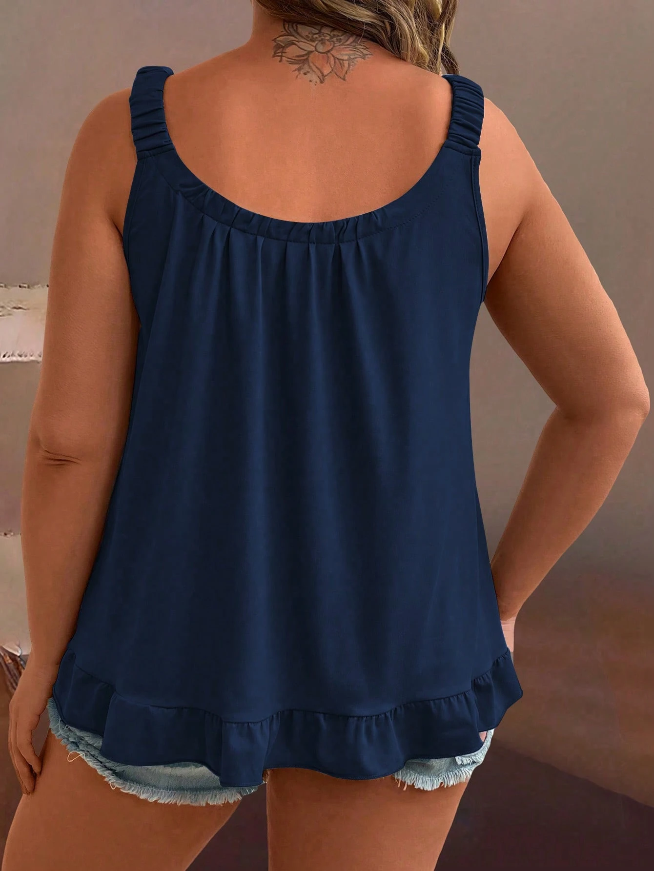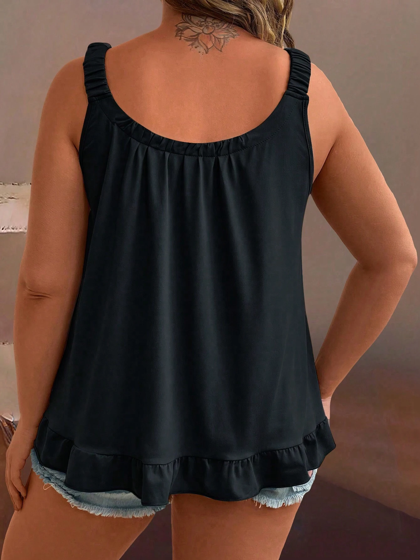 EMERY ROSE CURVE Plus Size Summer Casual Solid Color Ruffled Hem Tank Top