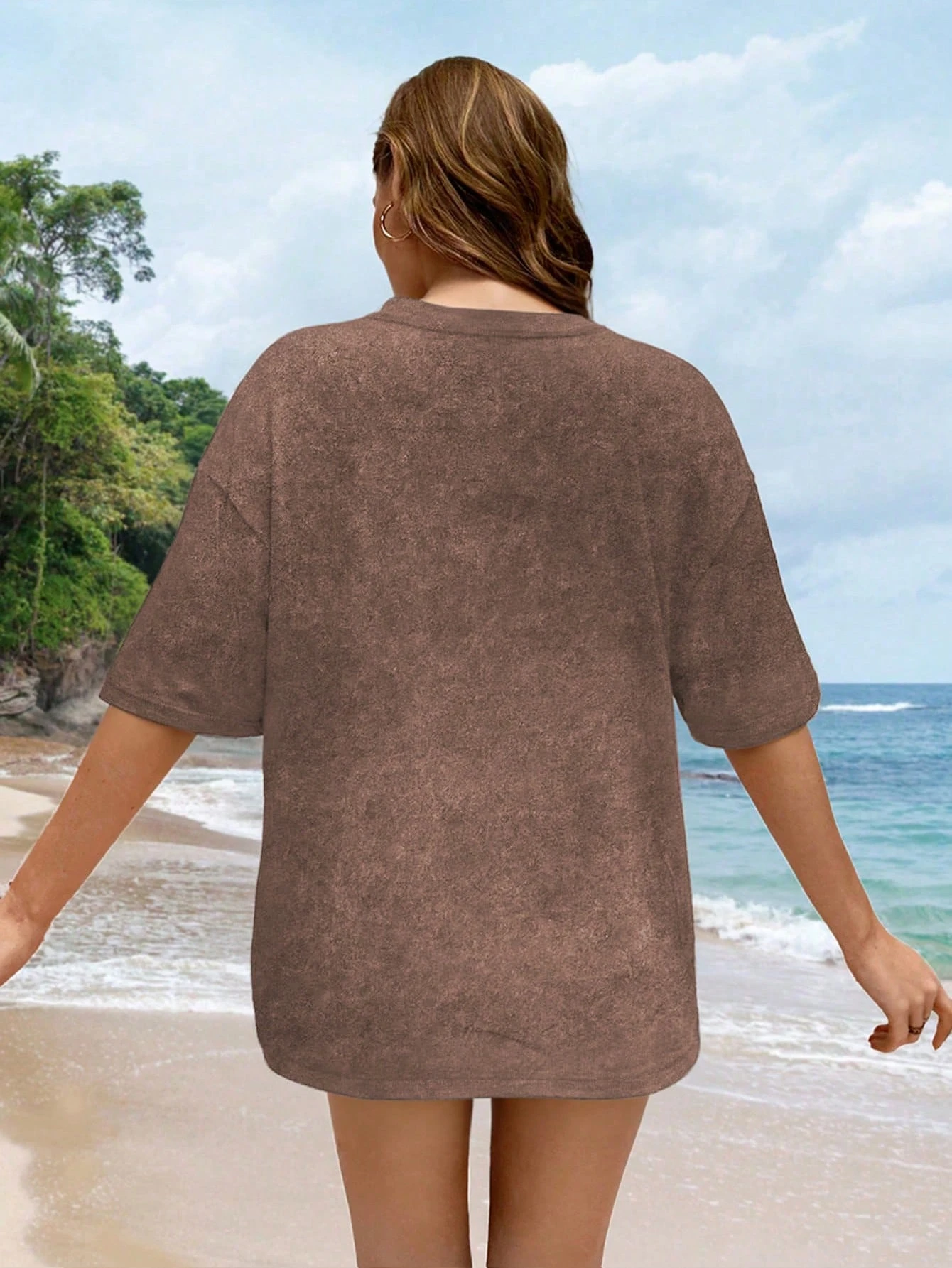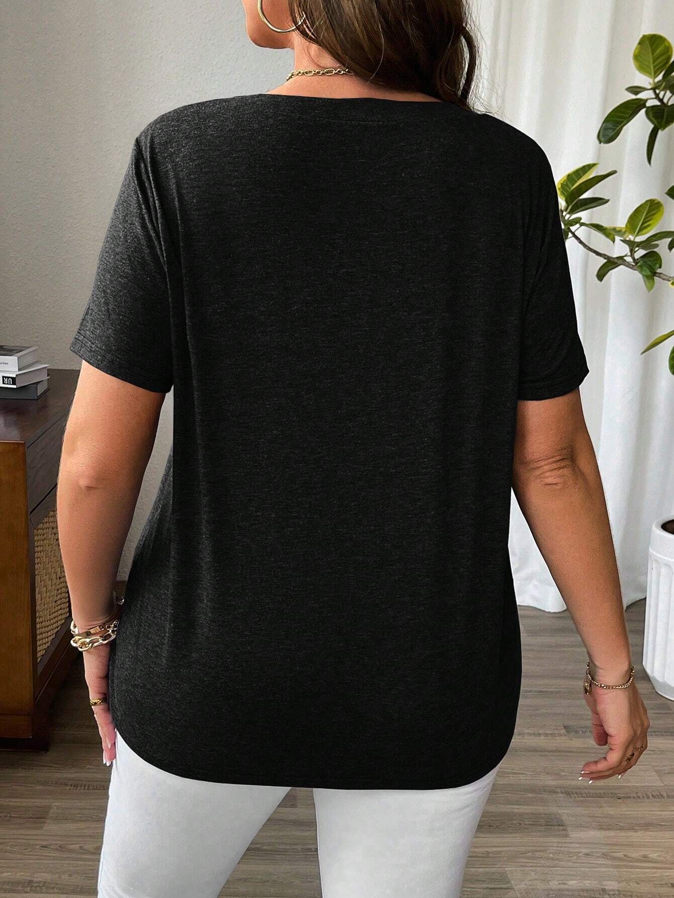 Plus Size Casual Loose Fit Round Neck Drop Shoulder Short Sleeve Tee