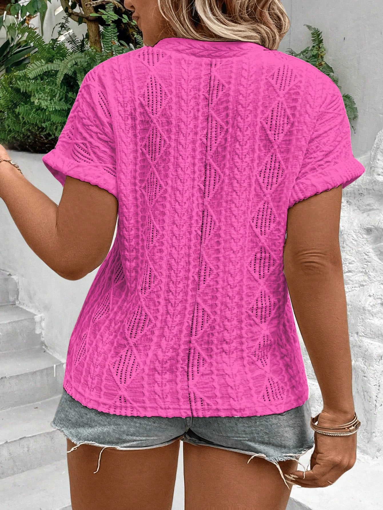 EMERY ROSE CURVE Plus Size Casual Jacquard Textured Knit T-Shirt