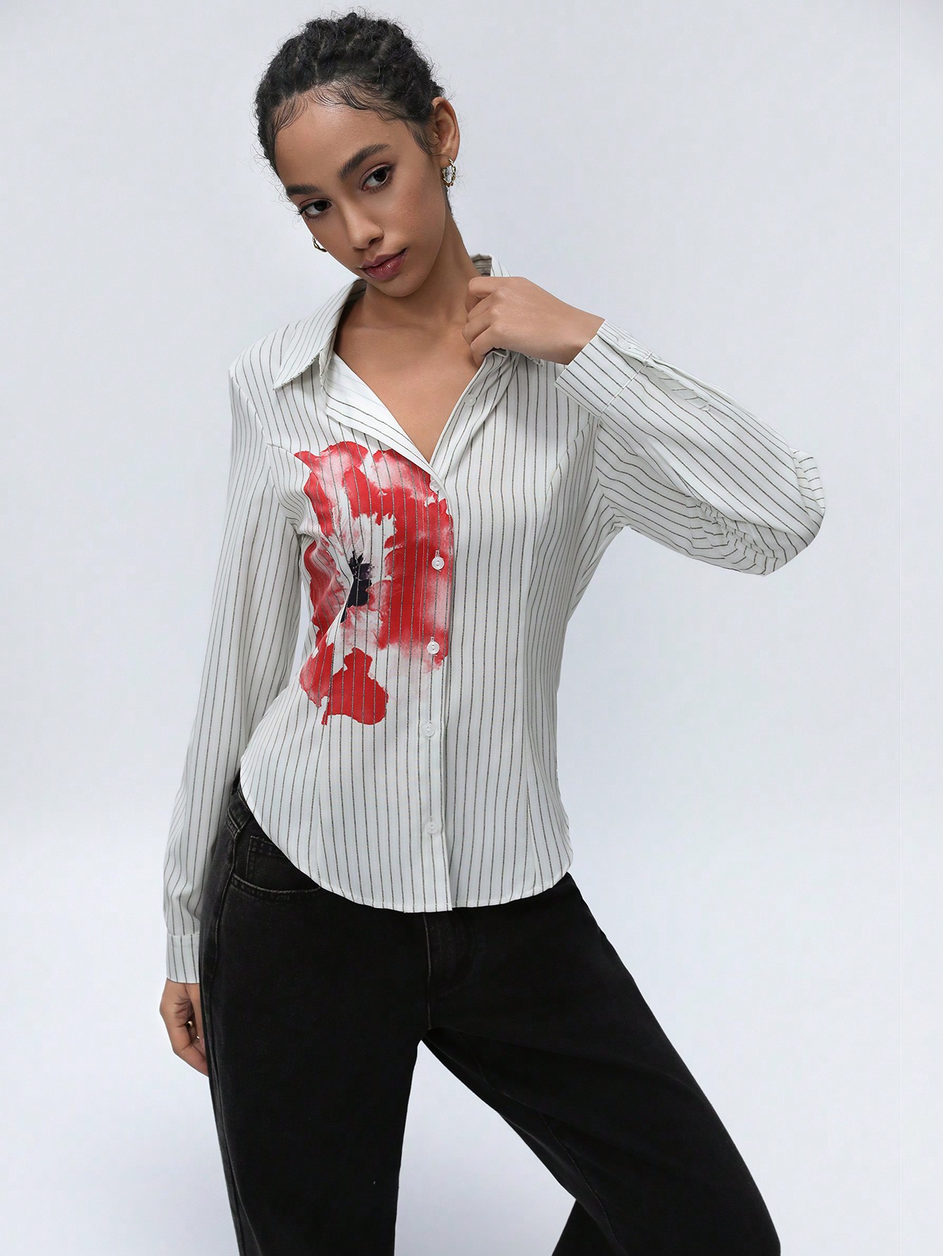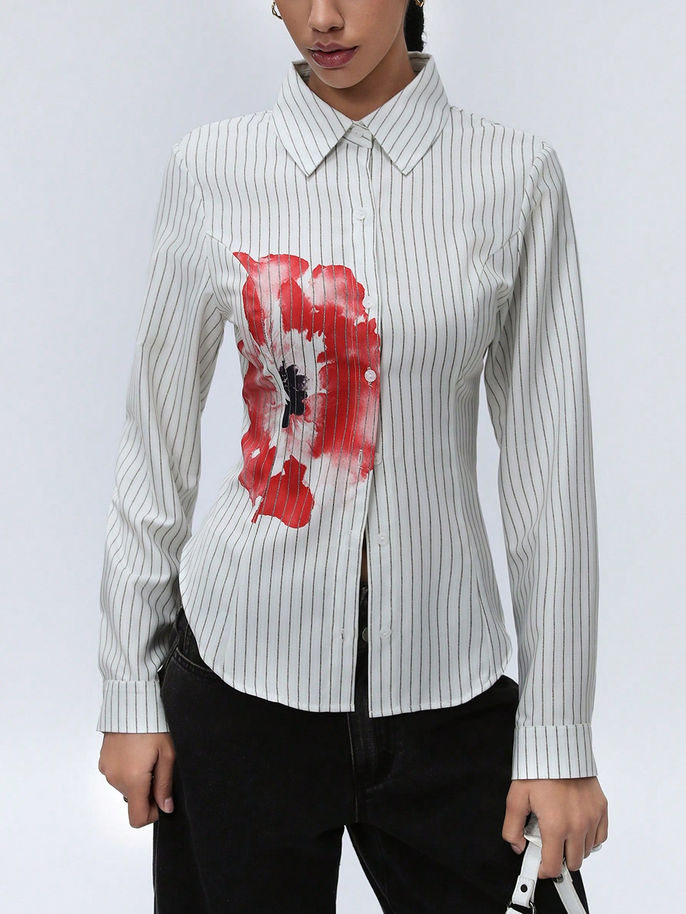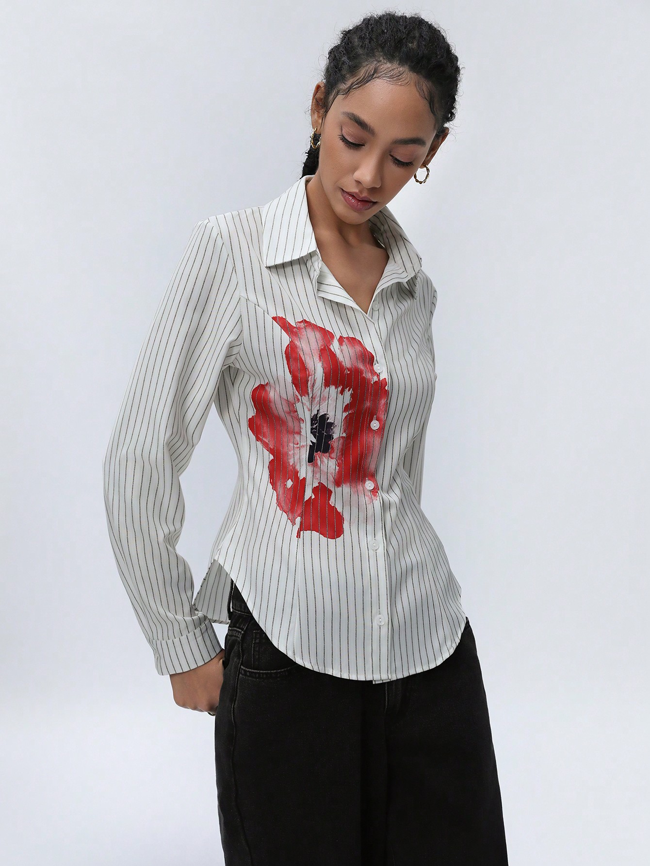 Home Women Clothing Women Tops, Blouses & Tee Women Blouses American Girl Style Fitted Vertical Striped Button-Up Long Sleeve Women’s Shirt