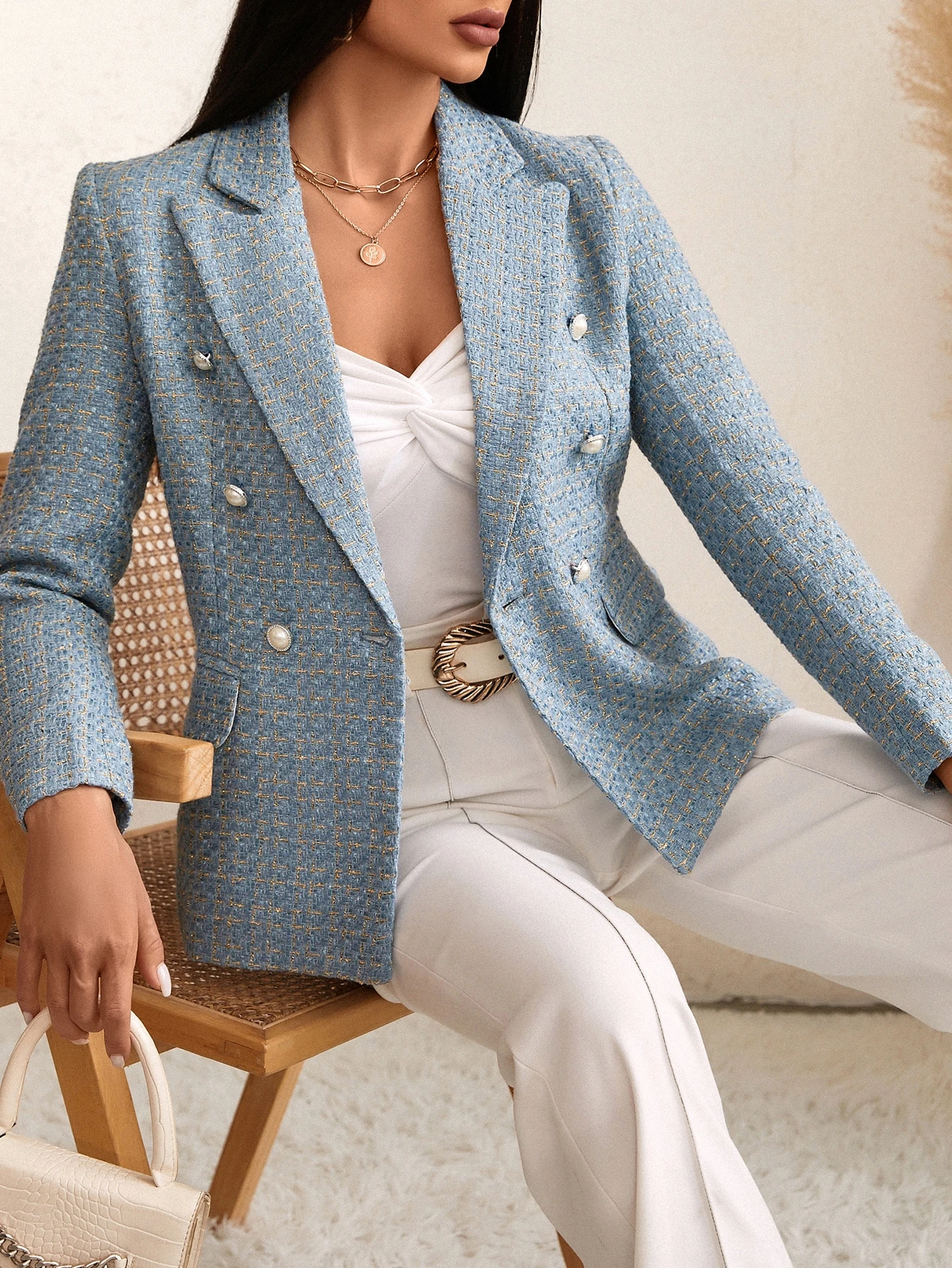 Neckline : Lapel : Office : Regular Sleeve : Regular : Regular : Double Button : Plaid : No : Lined : Double Breasted : No : Elegant : Baby Blue : Long Sleeve : Regular : Late Fall (10-17℃/50-63℉) : Regular Fit : Non-Stretch : Fabric : 70% Polyester, 30% Acrylic : Machine wash or professional dry clean : No : No : 100% Polyester”,”attr_name_en”:”Lining”,”attr_id”:1000078,”value_sort”:1,”attr_desc”:””,”attr_image”:””,”attrImgList”:null,”attr_sort”:81,”attr_value_id”:”526″,”attr_value_id_for_sort”:0,”attr_value_en”:”100% Polyester”}