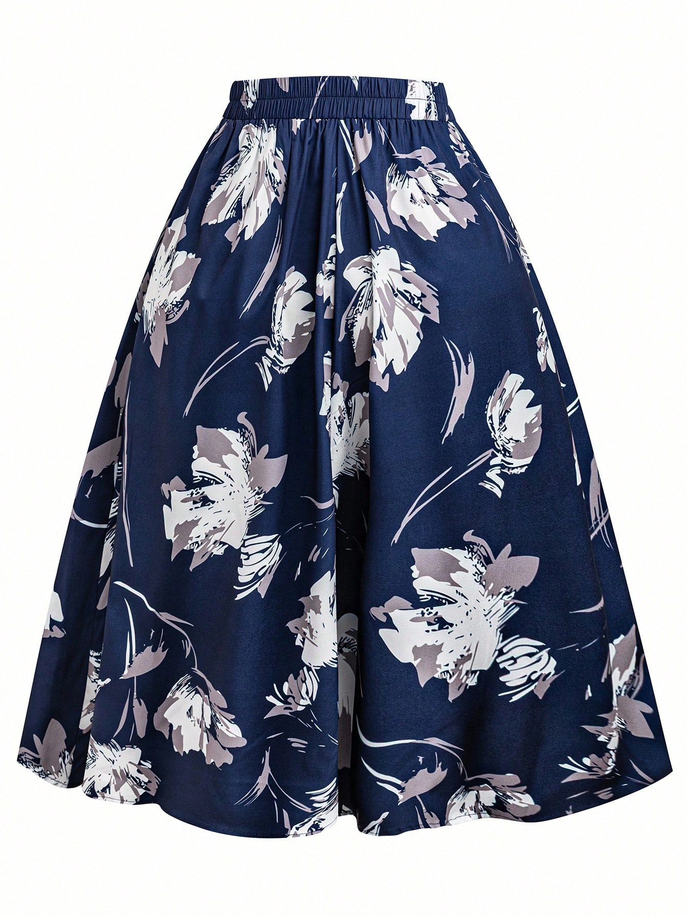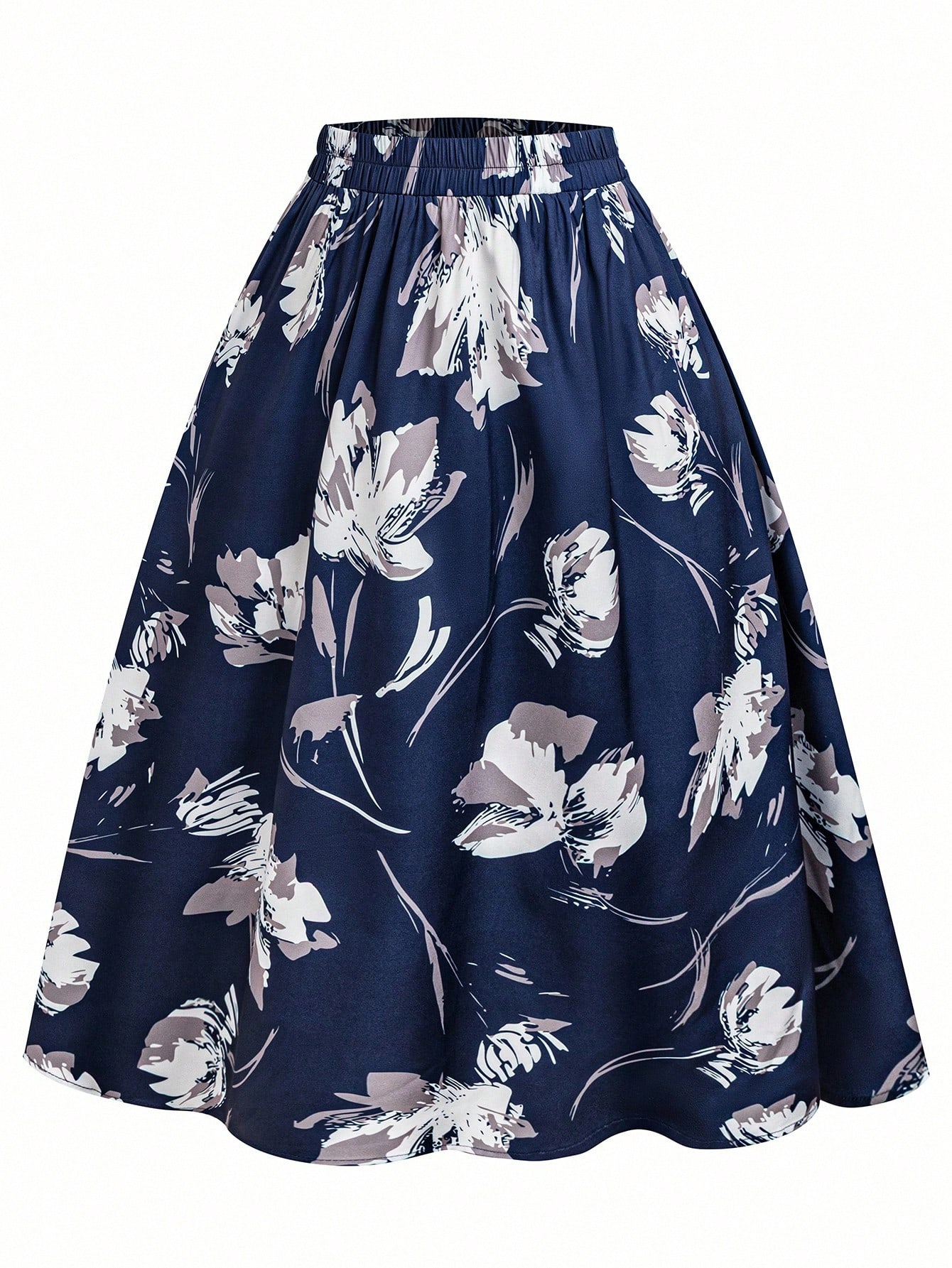 EMERY ROSE CURVE Elastic Waist A-Line Floral Print Blue Skirt