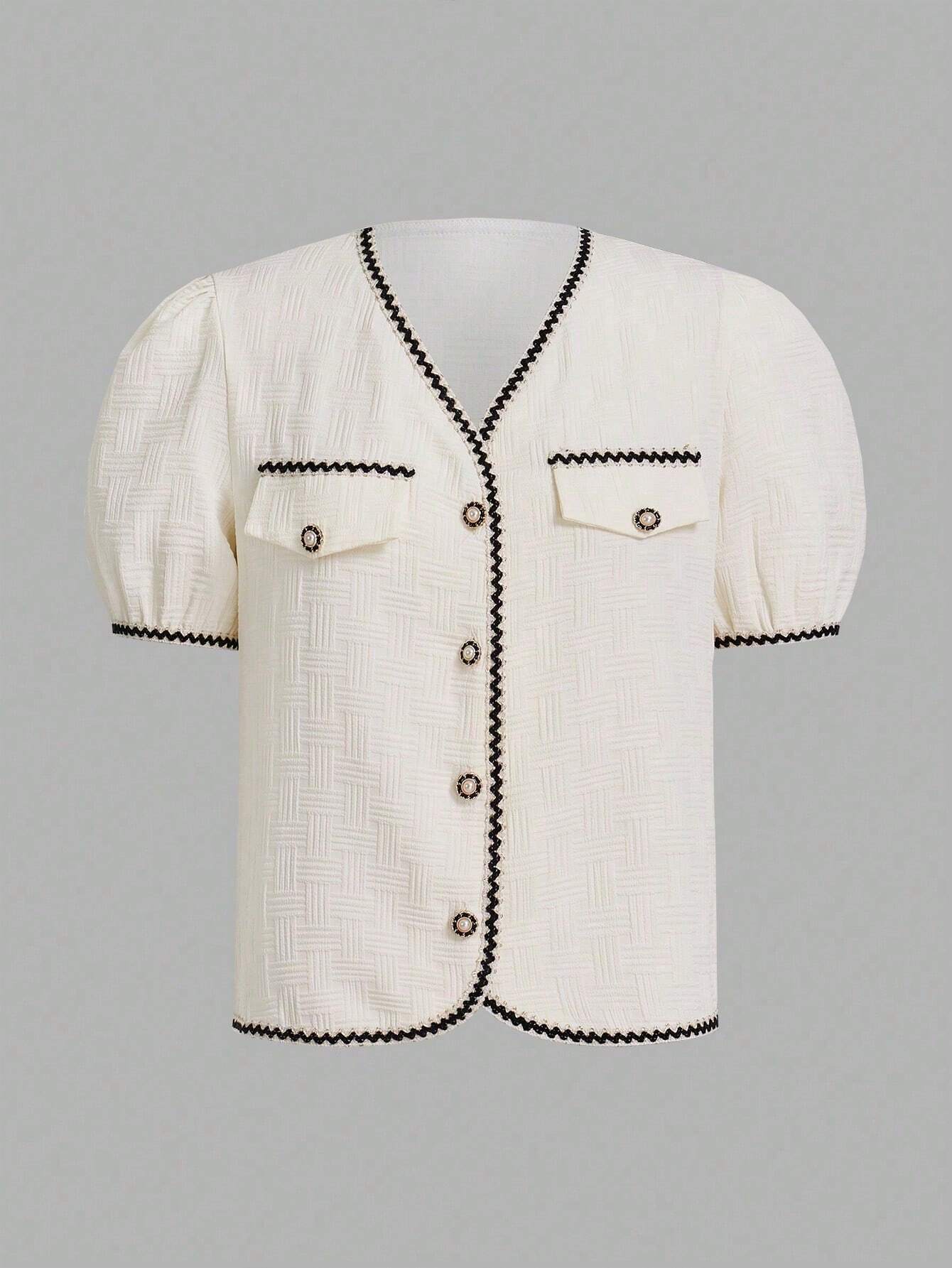 Occasion : Daily : Back-to-School, Teachers’ Day : Top : No : Colorblock, Plain : Unlined : Contrast Binding, Fake Pockets, Button Front : Elegant : Apricot : Regular : Puff Sleeve : V neck : Short Sleeve : Regular : Regular Fit : Non-Stretch : Woven Fabric : 100% Polyester : Machine wash, do not dry clean : No”,”attr_name_en”:”Sheer”,”attr_id”:207,”value_sort”:0,”attr_desc”:””,”attr_image”:””,”attrImgList”:null,”attr_sort”:27,”attr_value_id”:”459″,”attr_value_id_for_sort”:0,”attr_value_en”:”No”}