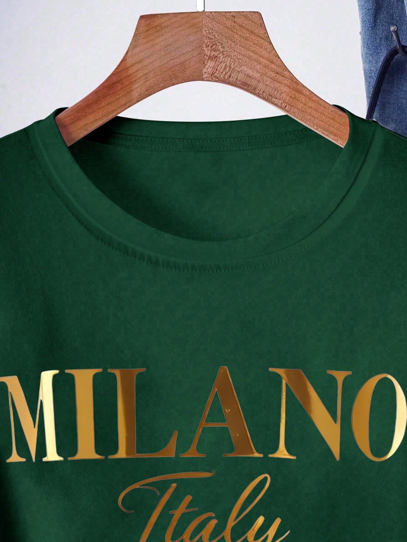 Women Plus Size Letter Print Round Neck Short Sleeve T-Shirt, Suitable For Summer