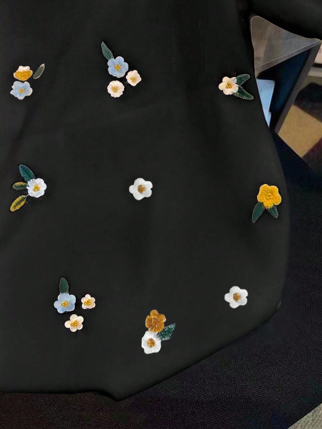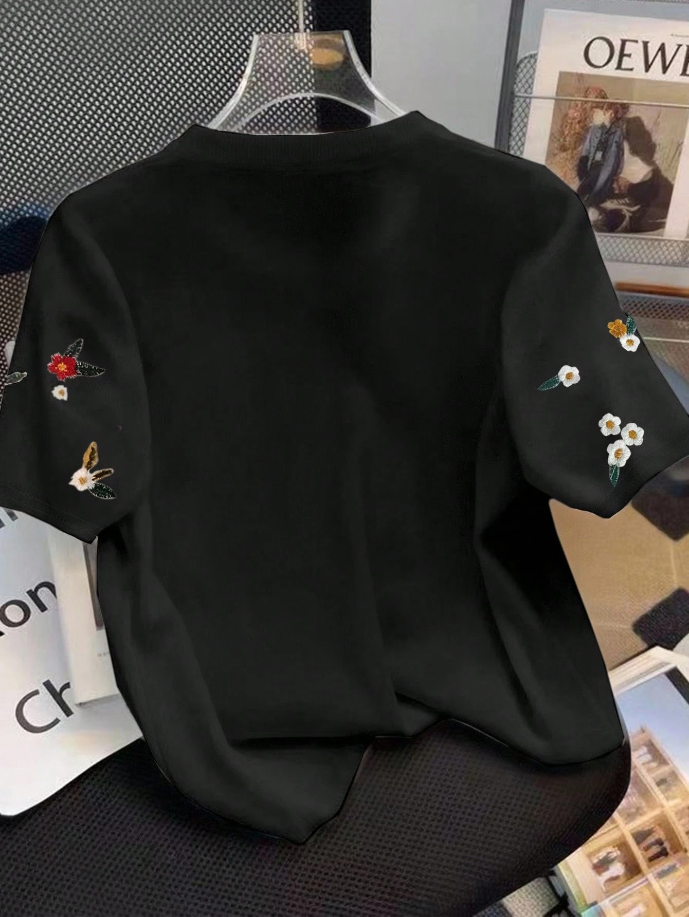 Women’s Summer Floral Embroidery Round Neck T-Shirt